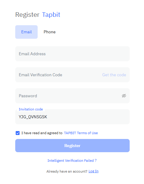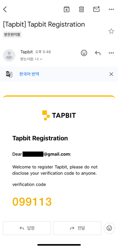 주소창에 tapbit.com 직접 입력하여 접속합니다 (수동으로 YJG_QVNSGSK 코드 입력)